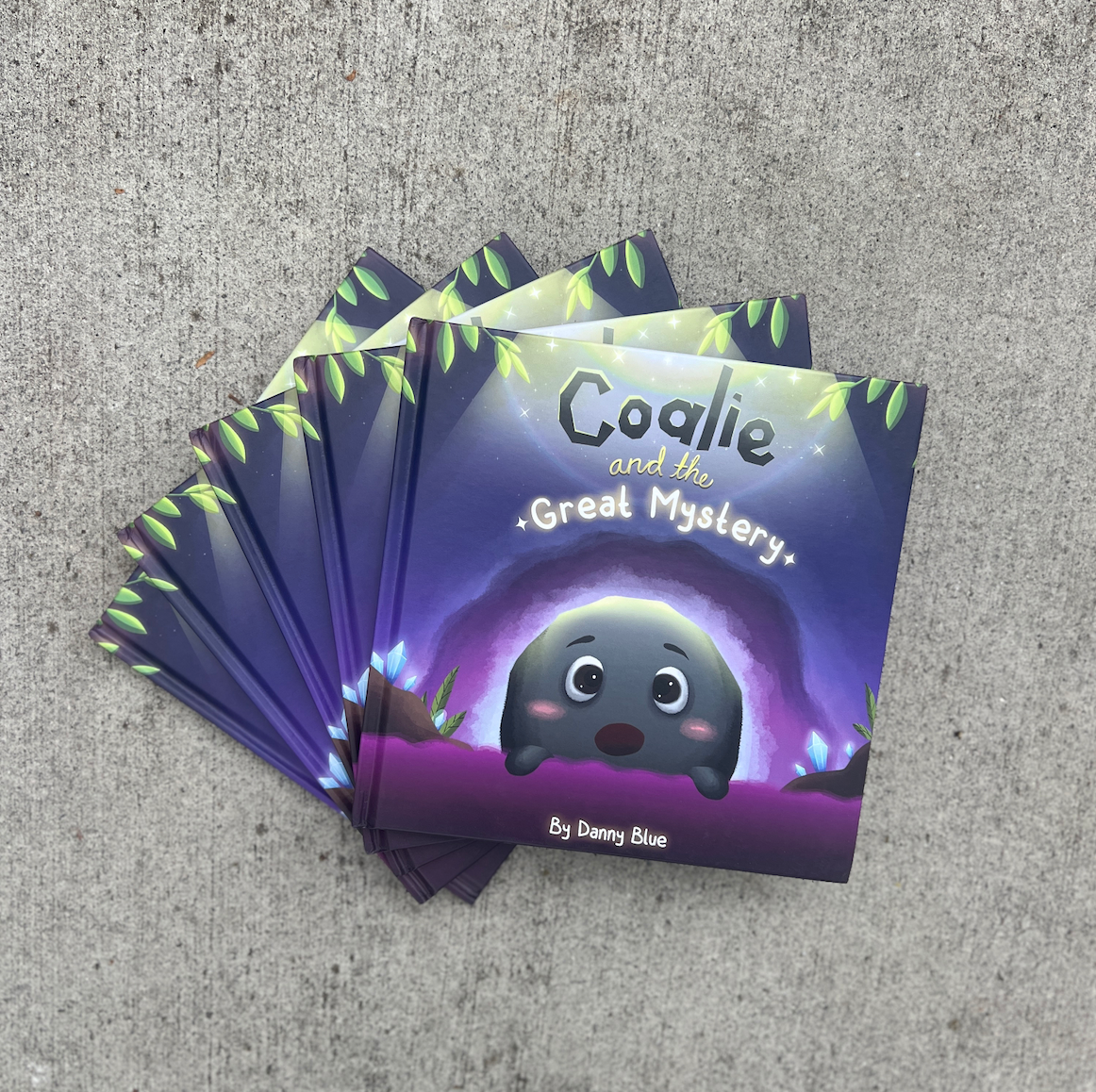 8.5" x 8.5" hardcover copy of Coalie & The Great Mystery.